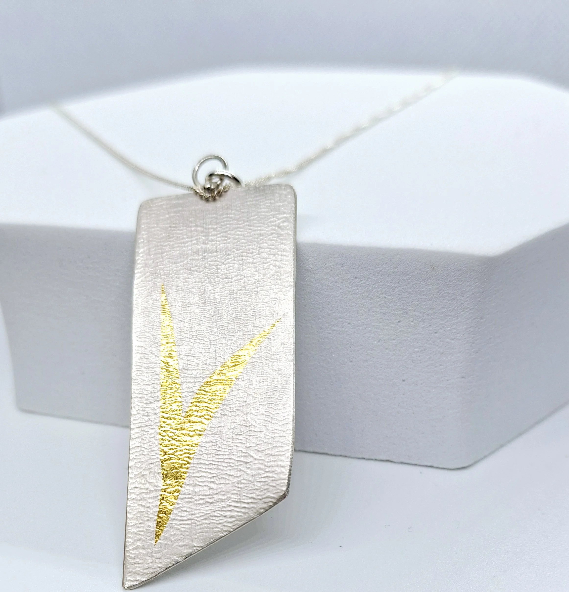 Field of Gold - a simple indulgence. A lightly textured pendant incorporating the ancient Japanese Keum-boo technique, where 23K gold is fused into the silver background.
